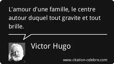L'affirmation de Victor Hugo, "L'amour d'une famille, le centre autour duquel tout gravite et tout brille", signifie que l'amour familial est le fondement essentiel et rayonnant de l'existence. C'est la force centrale qui donne un sens, une direction et un éclat à la vie de chaque membre. Sans ce noyau, les autres aspects de la vie manquent de point de référence et de luminosité.