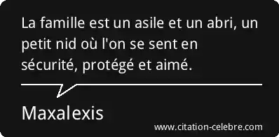 La famille est un asile et un abri, un petit nid où l'on se sent en sécurité, protégé et aimé.