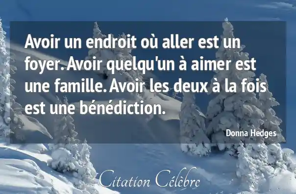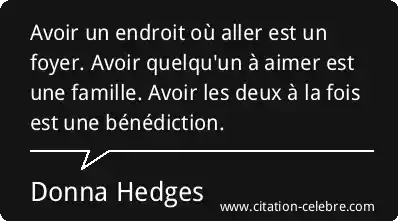 Avoir un endroit où aller est un foyer. Avoir quelqu'un à aimer est une famille. Avoir les deux à la fois est une bénédiction.