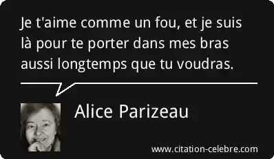Citation Alice Parizeau aime : Je t'aime comme un fou, et je suis là pour...