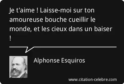 Je t'aime ! Laisse-moi sur ton amoureuse bouche cueillir le monde, et les cieux dans un baiser !