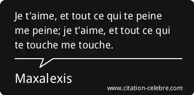 Je t'aime, et tout ce qui te peine me peine; je t'aime, et tout ce qui te touche me touche.