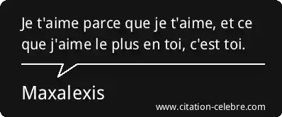 Je t'aime parce que je t'aime, et ce que j'aime le plus en toi, c'est toi.