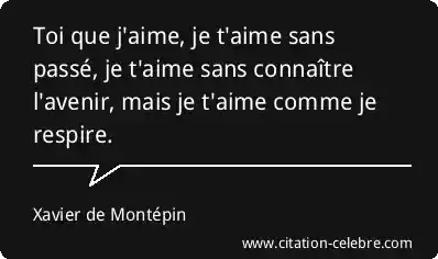 Toi que j'aime, je t'aime sans passé, je t'aime sans connaître l'avenir, mais je t'aime comme je respire.