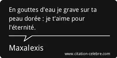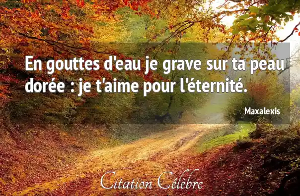 En gouttes d'eau je grave sur ta peau dorée : je t'aime pour l'éternité.