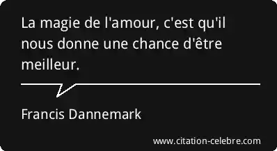 Citation Francis Dannemark amour : La magie de l'amour, c'est qu'il nous donne une chance...