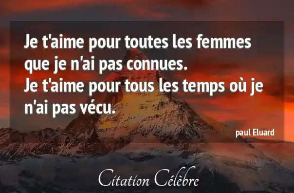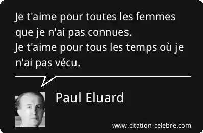 Je t'aime pour toutes les femmes que je n'ai pas connues.Je t'aime pour tous les temps où je n'ai pas vécu.