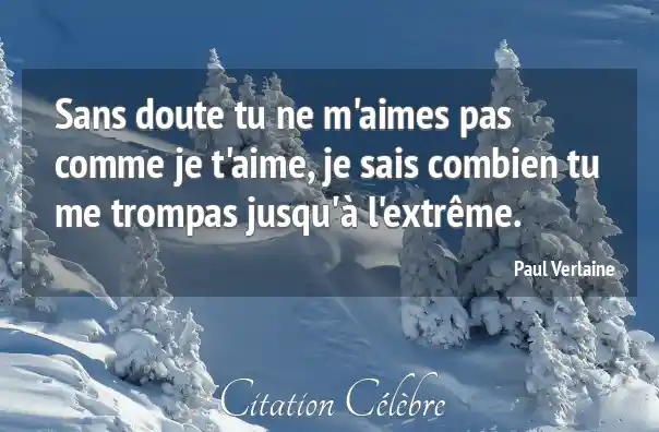 Sans doute tu ne m'aimes pas comme je t'aime, je sais combien tu me trompas jusqu'à l'extrême.