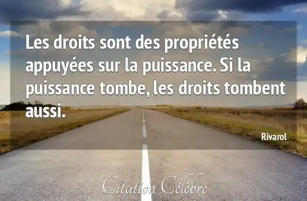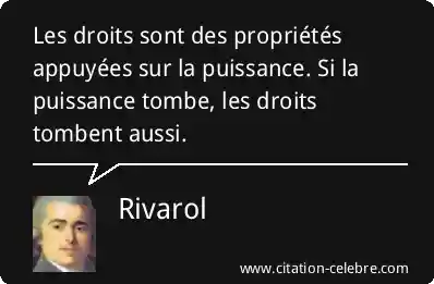 Citation Rivarol puissance : Les droits sont des propriétés appuyées sur la puissance. Si...