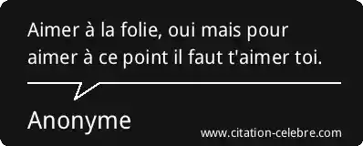 Aimer à la folie, oui mais pour aimer à ce point il faut t'aimer toi.