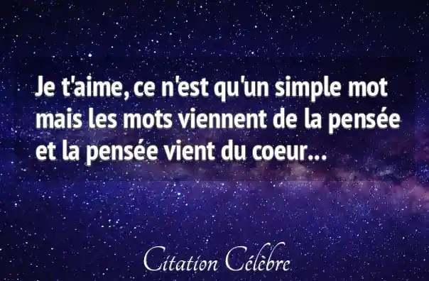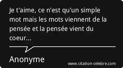 Je t'aime, ce n'est qu'un simple mot mais les mots viennent de la pensée et la pensée vient du coeur...