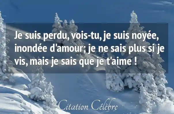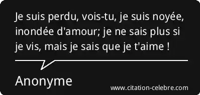 Je suis perdu, vois-tu, je suis noyée, inondée d'amour; je ne sais plus si je vis, mais je sais que je t'aime !