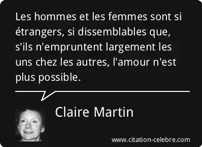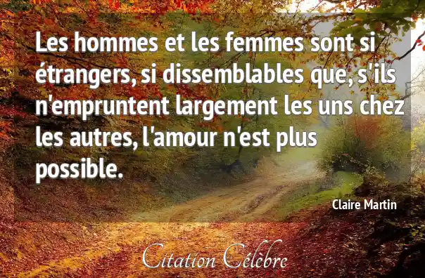 Les hommes et les femmes sont si étrangers, si dissemblables que, s'ils n'empruntent largement les uns chez les autres, l'amour n'est plus possible.