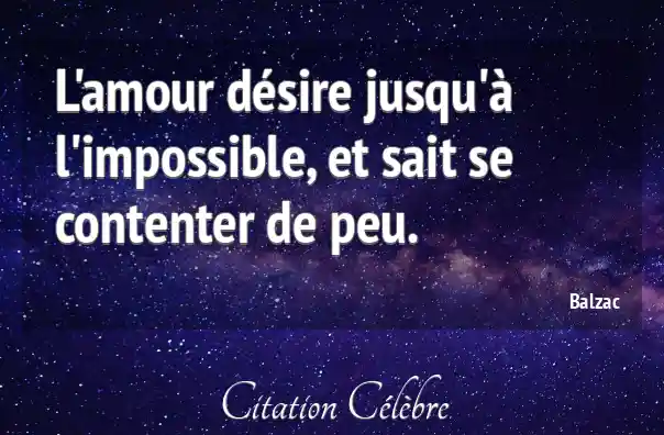 Citation Balzac amour : L'amour désire jusqu'à l'impossible, et sait se contenter de peu....