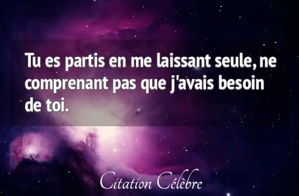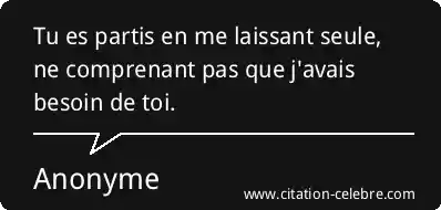 Tu es partis en me laissant seule, ne comprenant pas que j'avais besoin de toi.