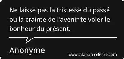 Ne laisse pas la tristesse du passé ou la crainte de l'avenir te voler le bonheur du présent.
