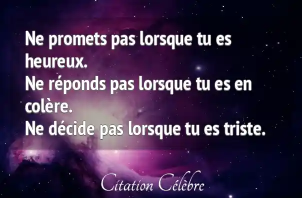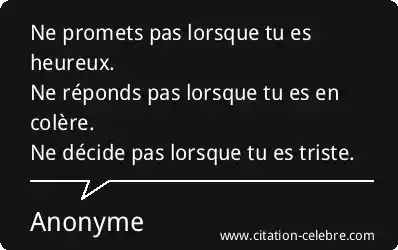 Ne promets pas lorsque tu es heureux. Ne réponds pas lorsque tu es en colère. Ne décide pas lorsque tu es triste.
