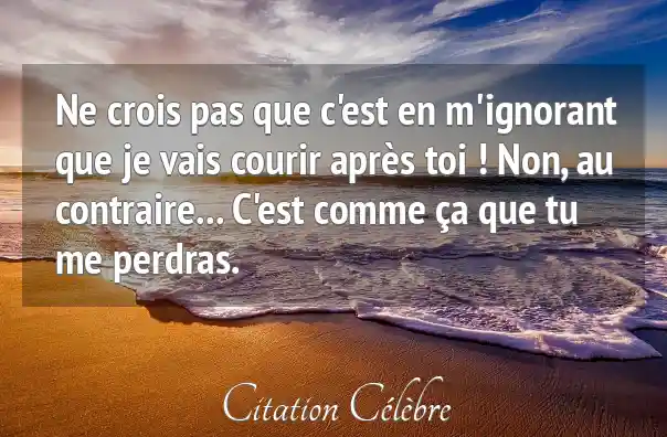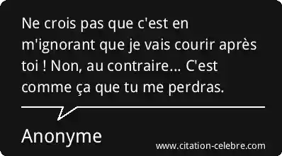 Ne crois pas que c'est en m'ignorant que je vais courir après toi ! Non, au contraire... C'est comme ça que tu me perdras.
