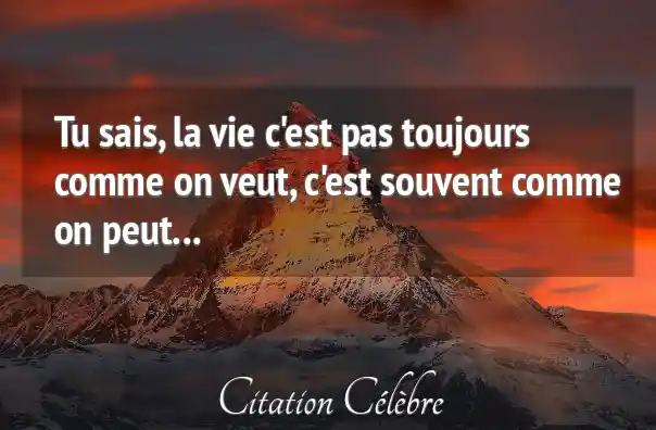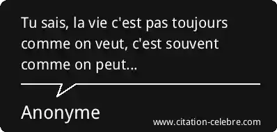 Tu sais, la vie c'est pas toujours comme on veut, c'est souvent comme on peut...