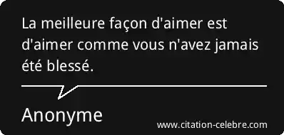 La meilleure façon d'aimer est d'aimer comme vous n'avez jamais été blessé.