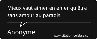 Mieux vaut aimer en enfer qu'être sans amour au paradis.