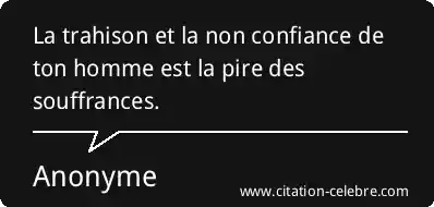 La trahison et la non confiance de ton homme est la pire des souffrances.