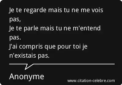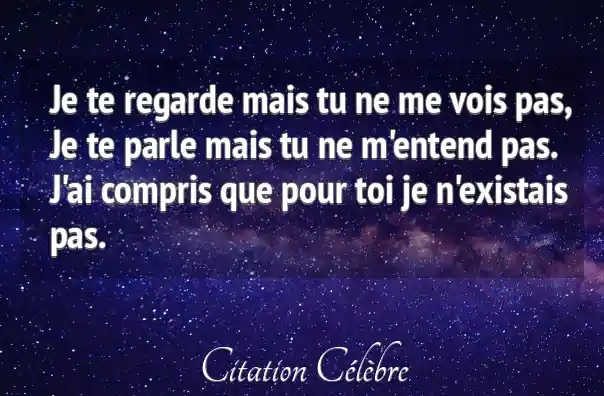 Citation Anonyme toi : Je te regarde mais tu ne me vois pas, Je...