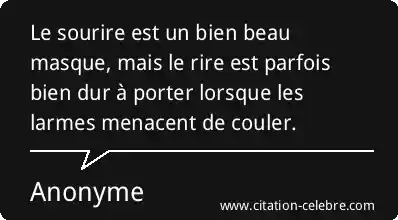 Le sourire est un bien beau masque, mais le rire est parfois bien dur à porter lorsque les larmes menacent de couler.