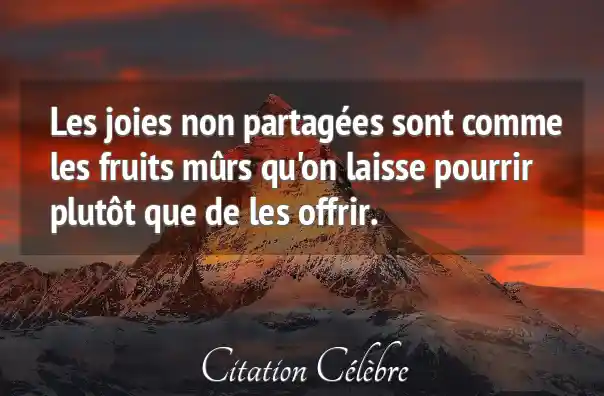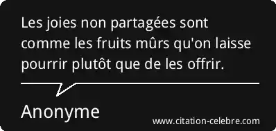 Les joies non partagées sont comme les fruits mûrs qu'on laisse pourrir plutôt que de les offrir.