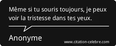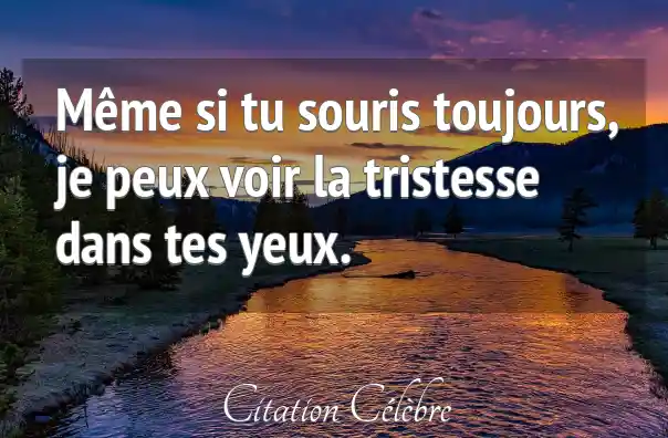 Même si tu souris toujours, je peux voir la tristesse dans tes yeux.