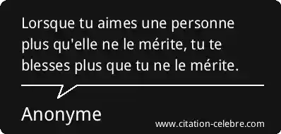 Lorsque tu aimes une personne plus qu'elle ne le mérite, tu te blesses plus que tu ne le mérite.