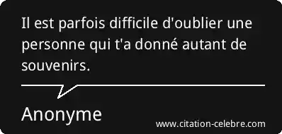 Il est parfois difficile d'oublier une personne qui t'a donné autant de souvenirs.