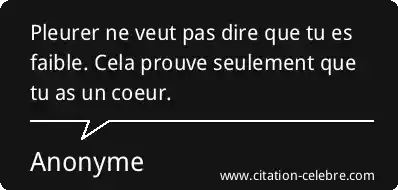 Pleurer ne veut pas dire que tu es faible. Cela prouve seulement que tu as un coeur.