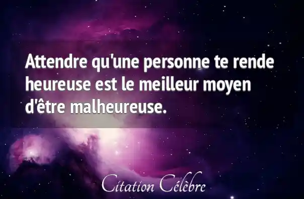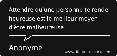 Attendre qu'une personne te rende heureuse est le meilleur moyen d'être malheureuse.