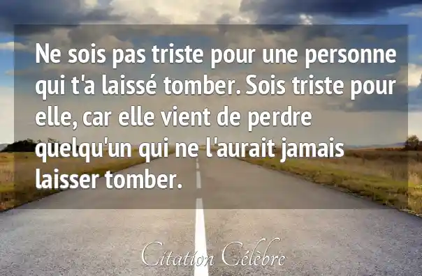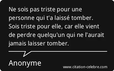 Ne sois pas triste pour une personne qui t'a laissé tomber. Sois triste pour elle, car elle vient de perdre quelqu'un qui ne l'aurait jamais laisser tomber.