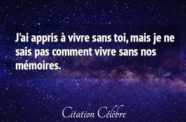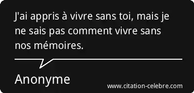 J'ai appris à vivre sans toi, mais je ne sais pas comment vivre sans nos mémoires.