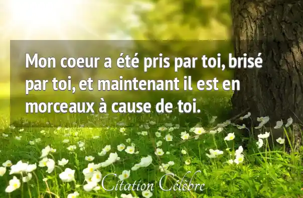 Mon coeur a été pris par toi, brisé par toi, et maintenant il est en morceaux à cause de toi.