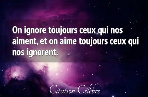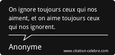 On ignore toujours ceux qui nos aiment, et on aime toujours ceux qui nos ignorent.