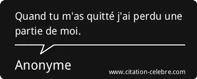 Quand tu m'as quitté j'ai perdu une partie de moi.