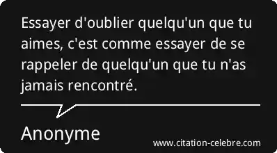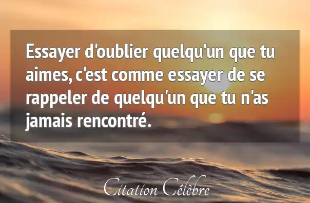 Essayer d'oublier quelqu'un que tu aimes, c'est comme essayer de se rappeler de quelqu'un que tu n'as jamais rencontré.