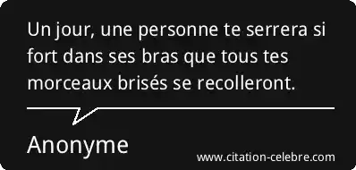 Un jour, une personne te serrera si fort dans ses bras que tous tes morceaux brisés se recolleront.