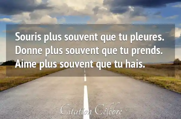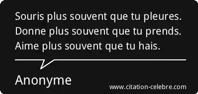 Souris plus souvent que tu pleures. Donne plus souvent que tu prends. Aime plus souvent que tu hais.