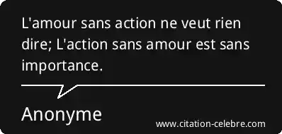 L'amour sans action ne veut rien dire; L'action sans amour est sans importance.
