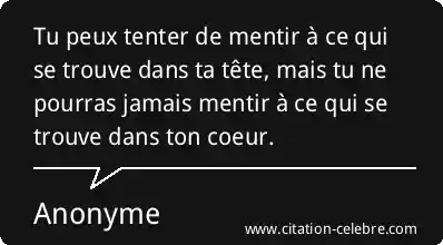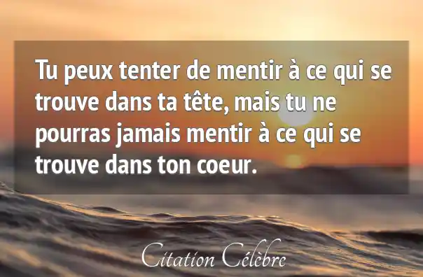 Tu peux tenter de mentir à ce qui se trouve dans ta tête, mais tu ne pourras jamais mentir à ce qui se trouve dans ton coeur.