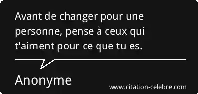 Avant de changer pour une personne, pense à ceux qui t'aiment pour ce que tu es.