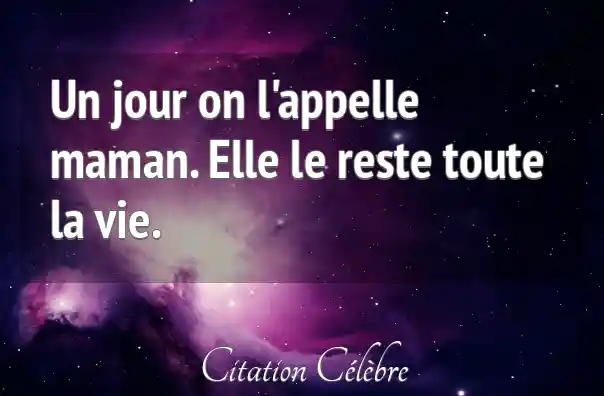 Un jour on l'appelle maman. Elle le reste toute la vie.