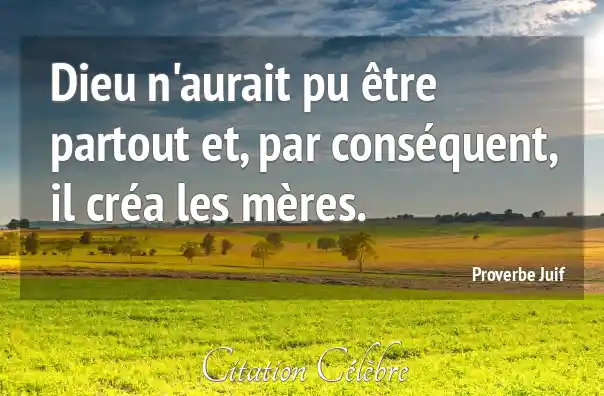 Au sens littéral, ce proverbe juif exprime l'idée que Dieu, en tant qu'Être suprême, ne peut pas physiquement être présent à chaque instant et en tout lieu pour veiller sur l'humanité entière. Par conséquent, il a délégué une partie de cette mission universelle et constante de sollicitude et de protection aux mères. La mère est donc perçue comme un substitut divin sur terre, un être créé spécifiquement pour incarner et exercer cette attention et ce soin omniprésents qui, autrement, feraient défaut.