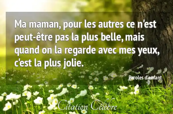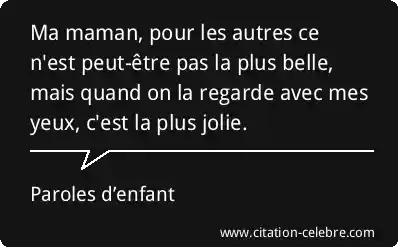 Ma maman, pour les autres ce n'est peut-être pas la plus belle, mais quand on la regarde avec mes yeux, c'est la plus jolie.