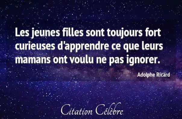 Les jeunes filles sont toujours fort curieuses d'apprendre ce que leurs mamans ont voulu ne pas ignorer.