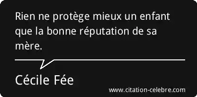 Rien ne protège mieux un enfant que la bonne réputation de sa mère.